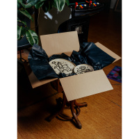 Sady tauížů balíme do kartónových krabic, kdy každá krabice je „nějak“ pokreslena. Dvacet různě kreslených designů, takže je to ruleta, kdy nikdo neví, jak pokreslená krabice vám přistane doma na stole. Může to být krabice s lebečkou, ale také třeba s hlavičkou, kostičkou či biskupem. Nikdy nevíte.