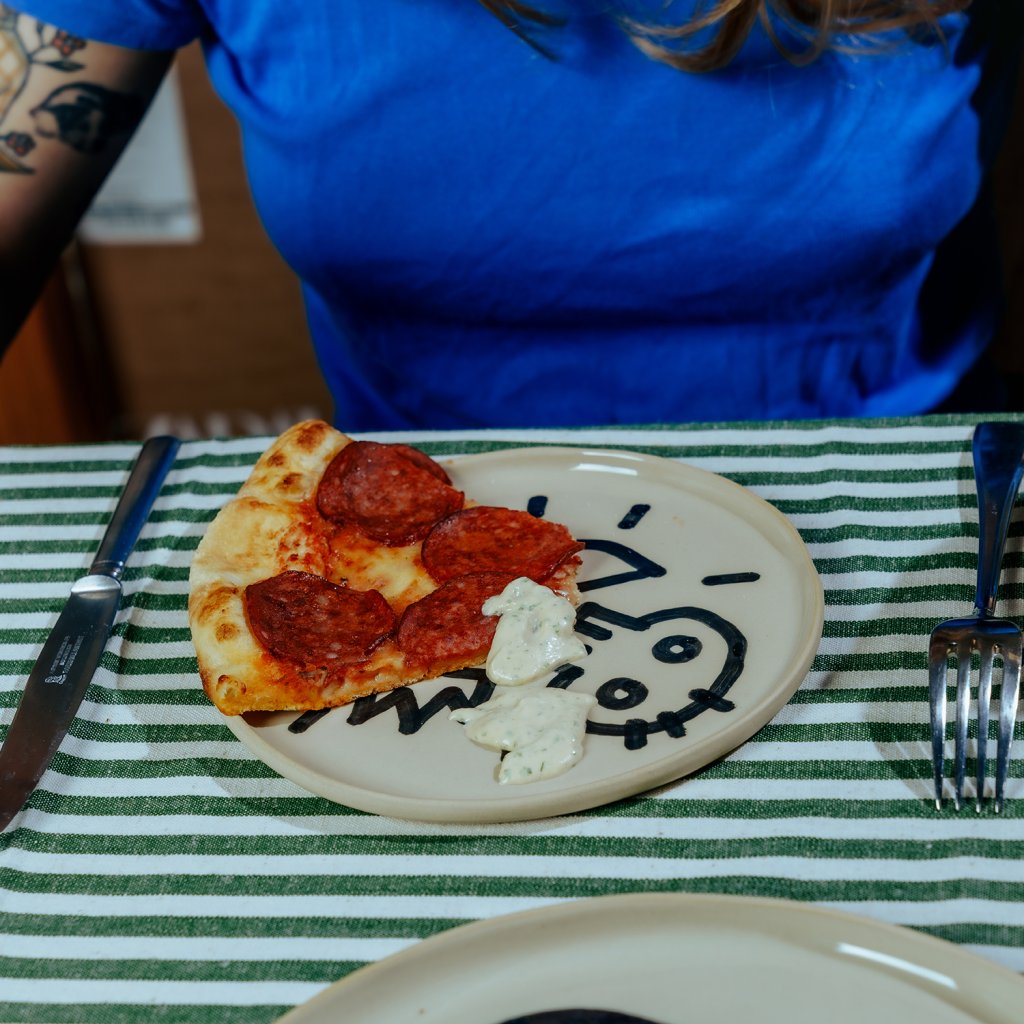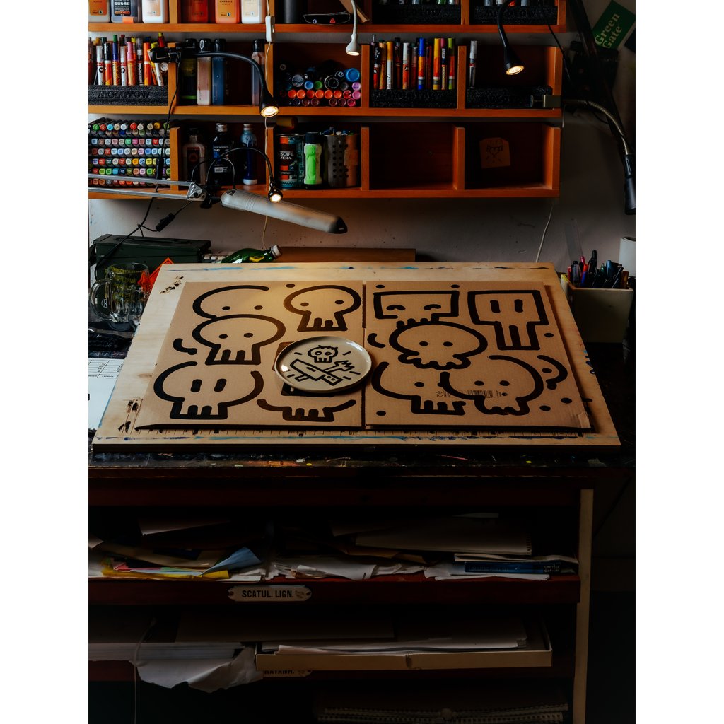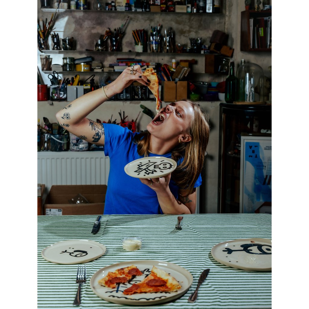 Sada vznikla v Brně, pod vedením Emmy a pod rukama Vladimíra. Vladimír se rozhodl že design tauížů postaví na dadaistické šunkovitosti, proto nalil černou engoba barvu do dripsticku a šel cestou nejjednoduší možné doodle kresby. Ani čárka na zmar! Prostě na tauíži nebudou žádné zbytky!