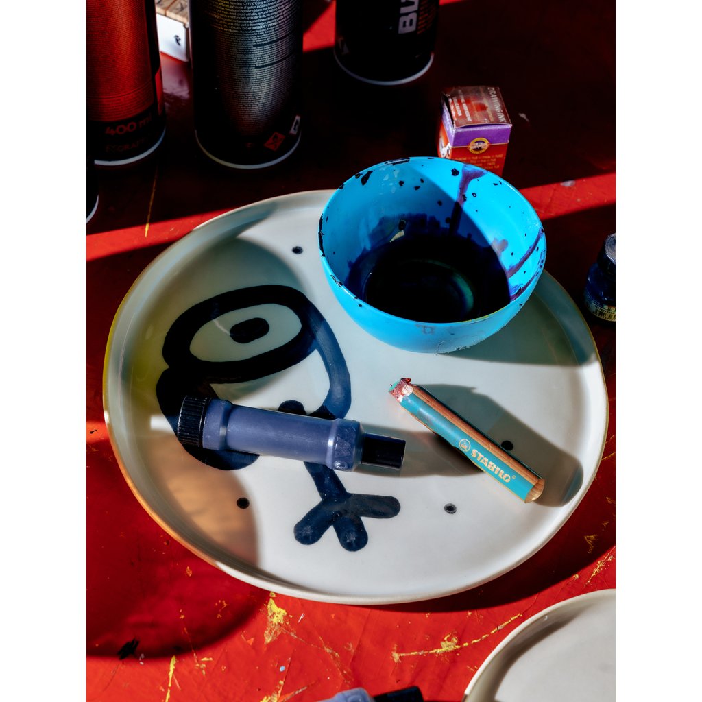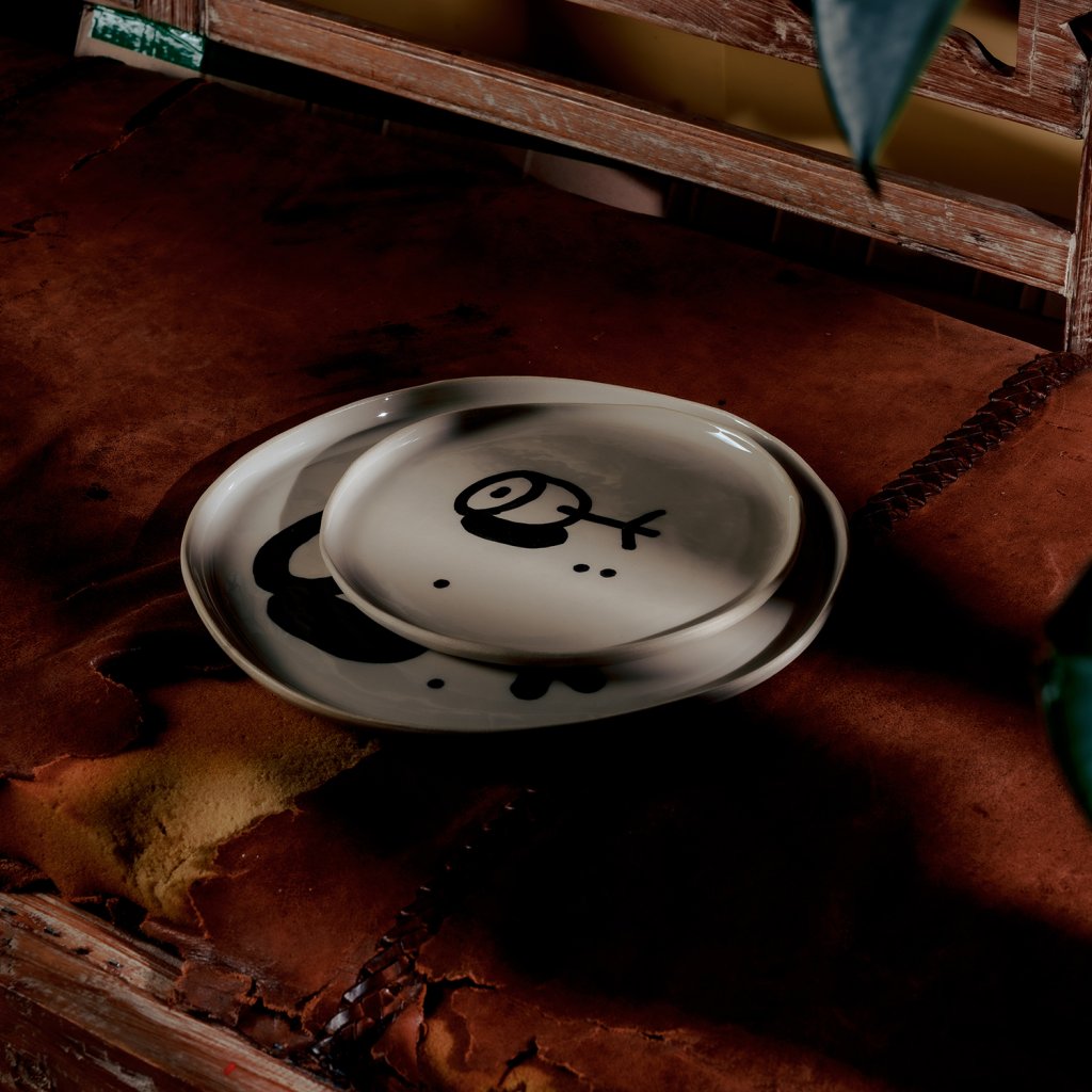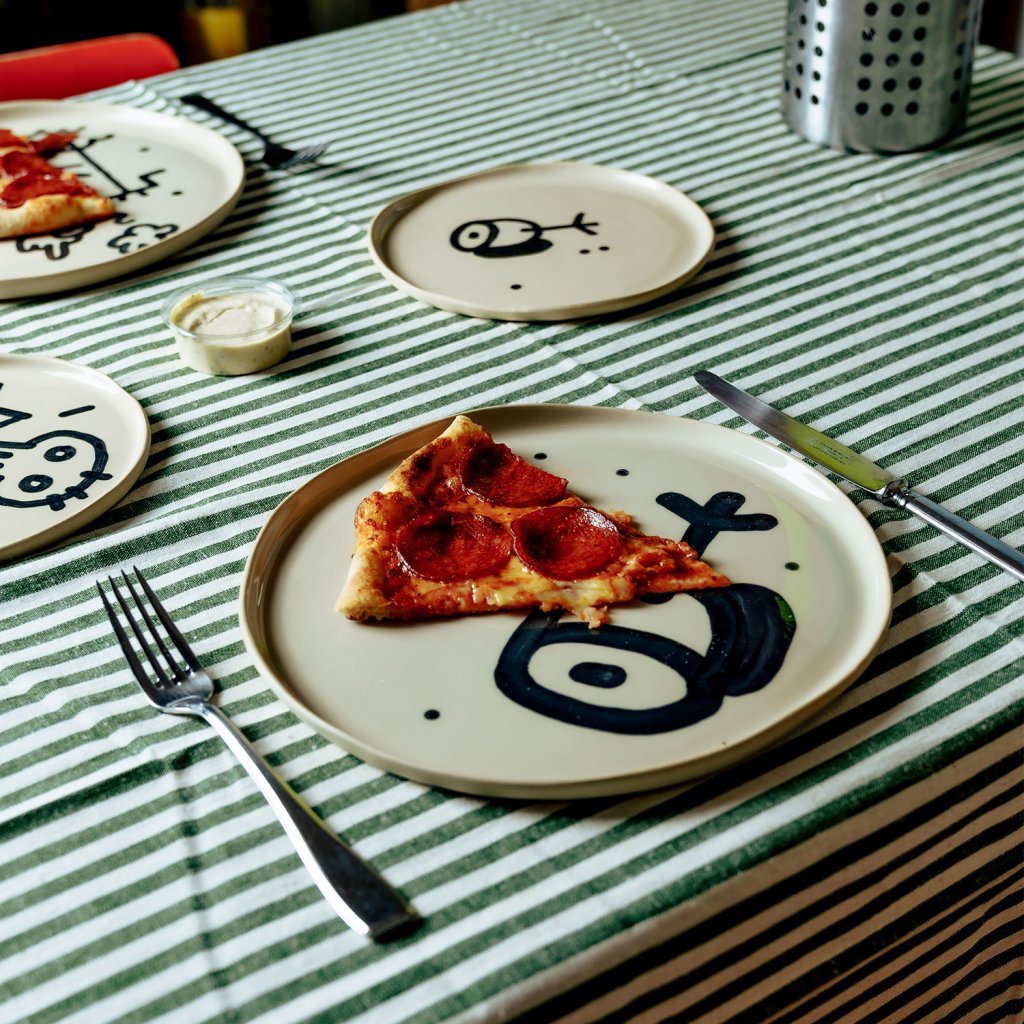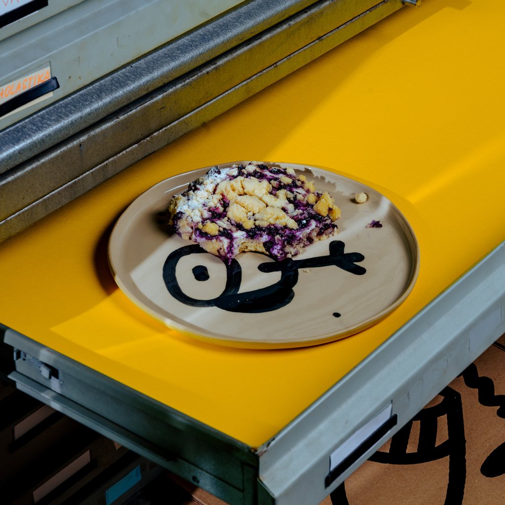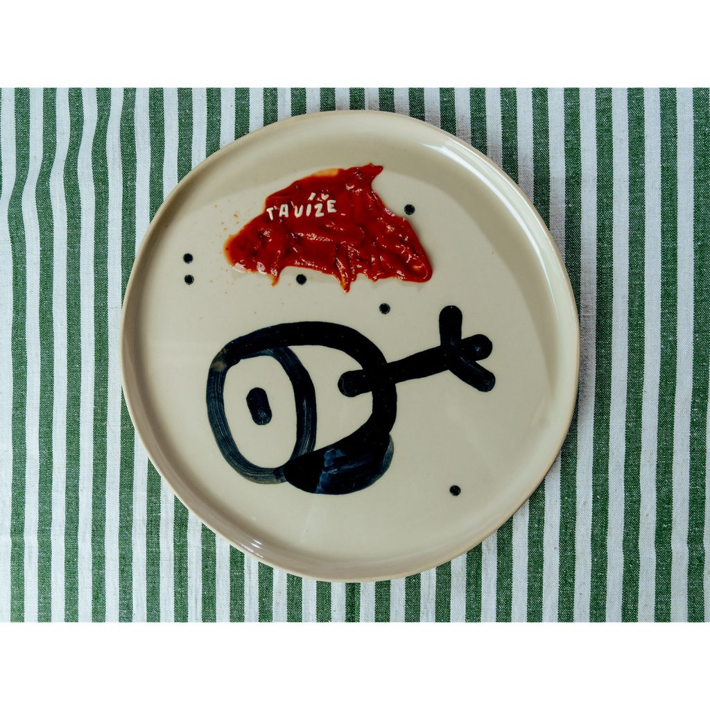 Sada vznikla v Brně, pod vedením Emmy a pod rukama Vladimíra. Vladimír se rozhodl že design tauížů postaví na dadaistické šunkovitosti, proto nalil černou engoba barvu do dripsticku a šel cestou nejjednoduší možné doodle kresby. Ani čárka na zmar! Prostě na tauíži nebudou žádné zbytky!