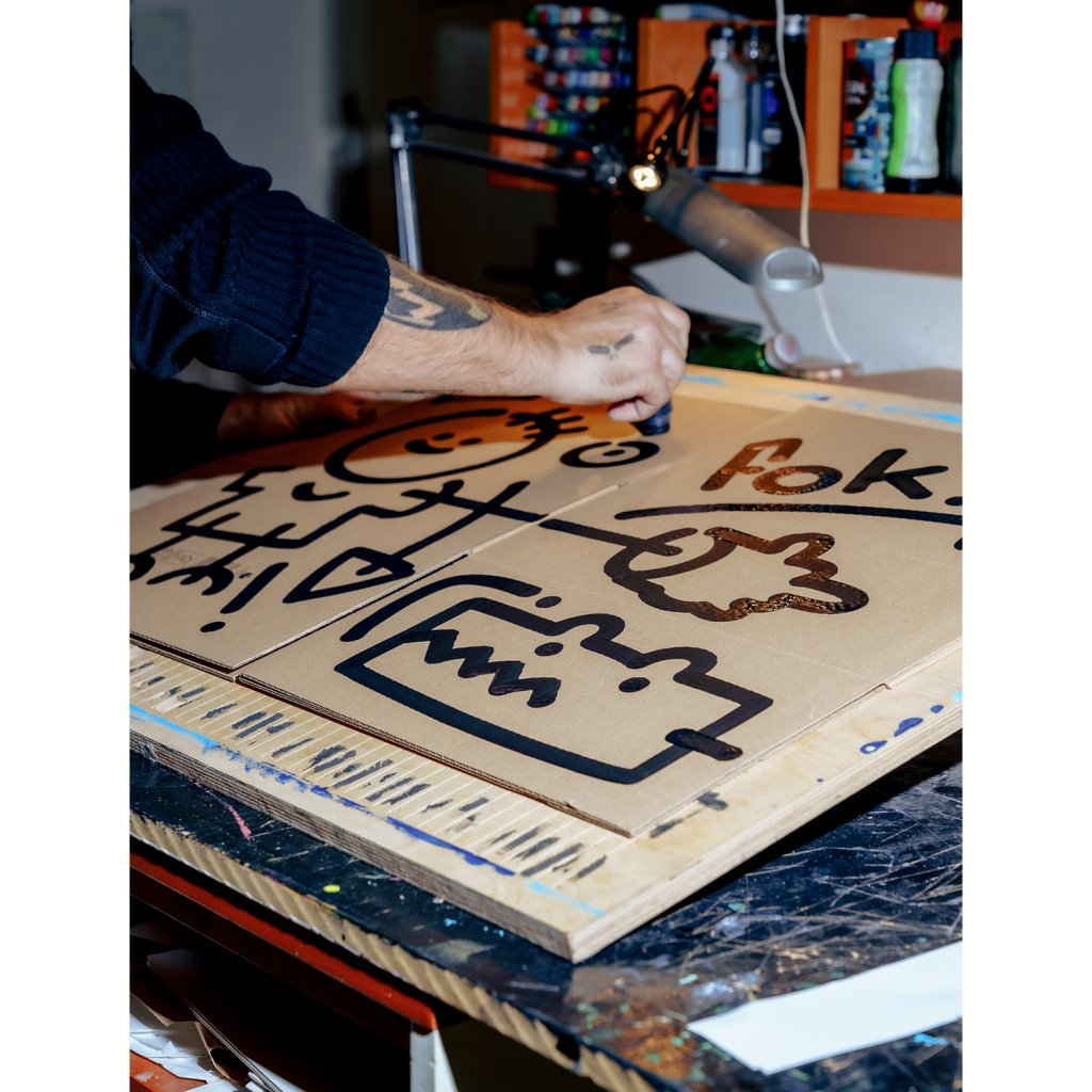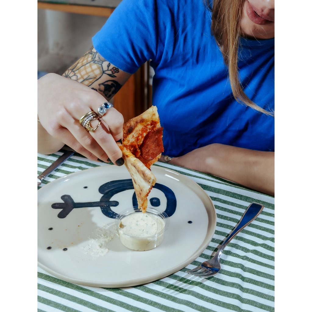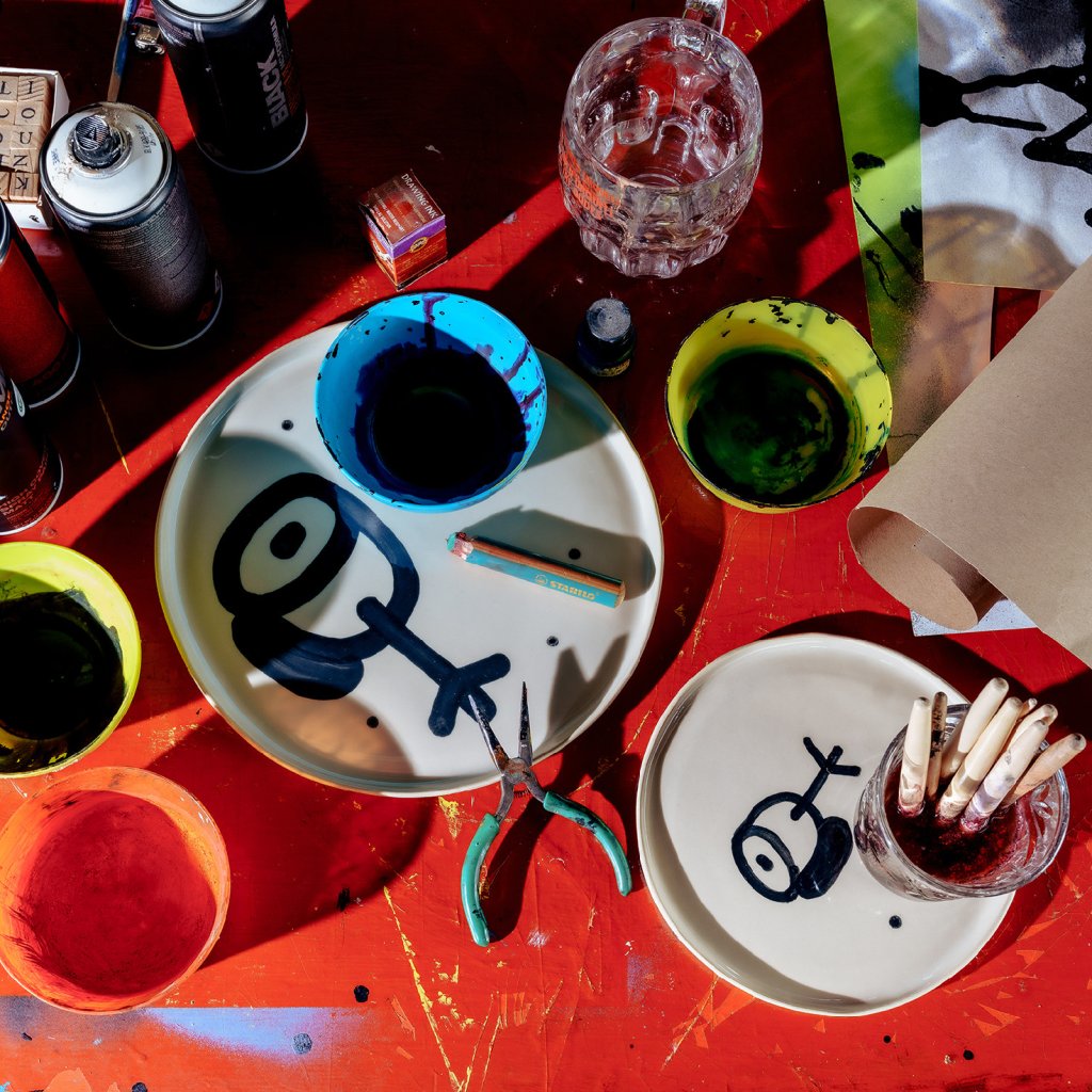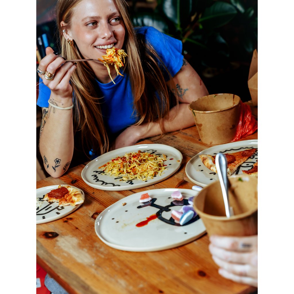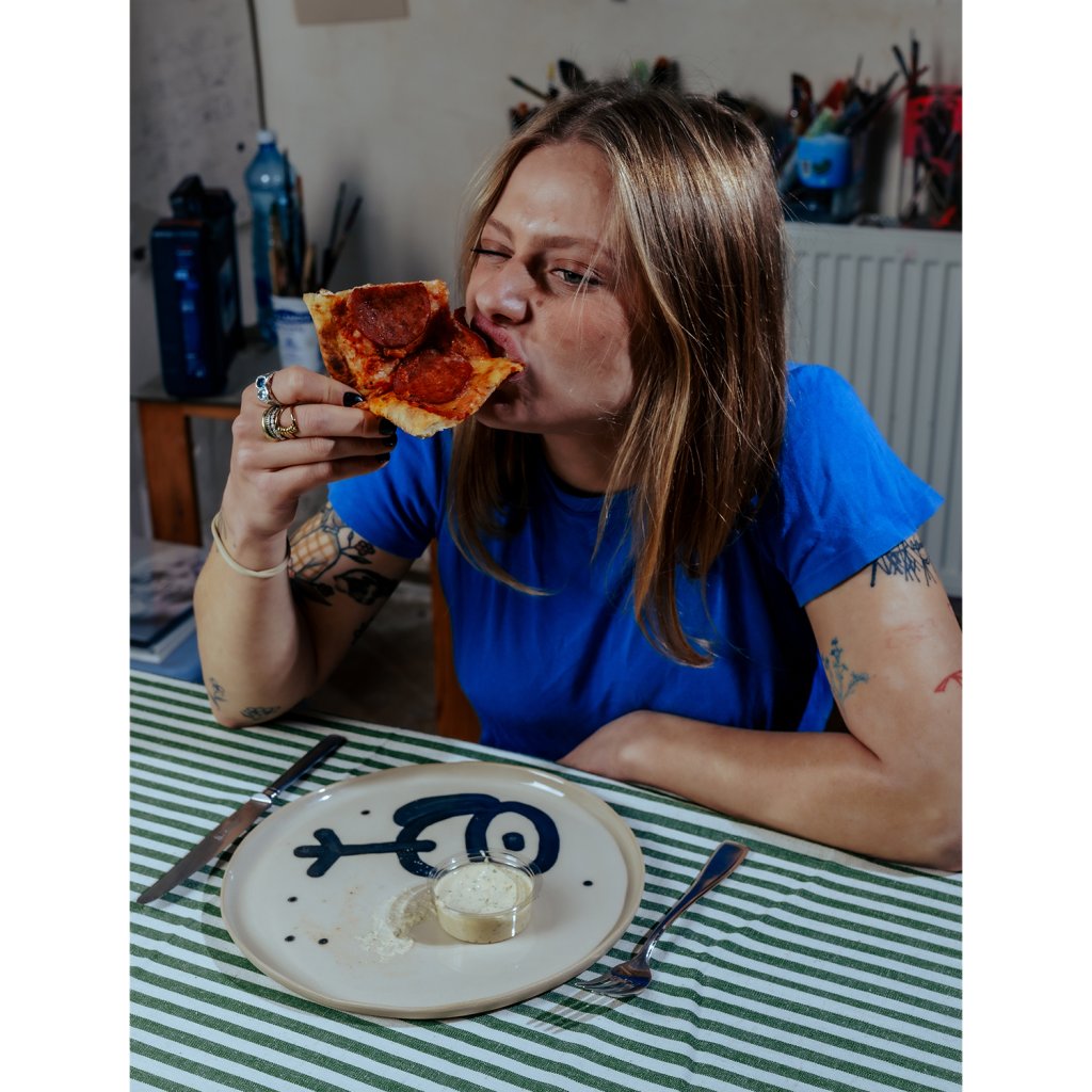 Sada vznikla v Brně, pod vedením Emmy a pod rukama Vladimíra. Vladimír se rozhodl že design tauížů postaví na dadaistické šunkovitosti, proto nalil černou engoba barvu do dripsticku a šel cestou nejjednoduší možné doodle kresby. Ani čárka na zmar! Prostě na tauíži nebudou žádné zbytky!